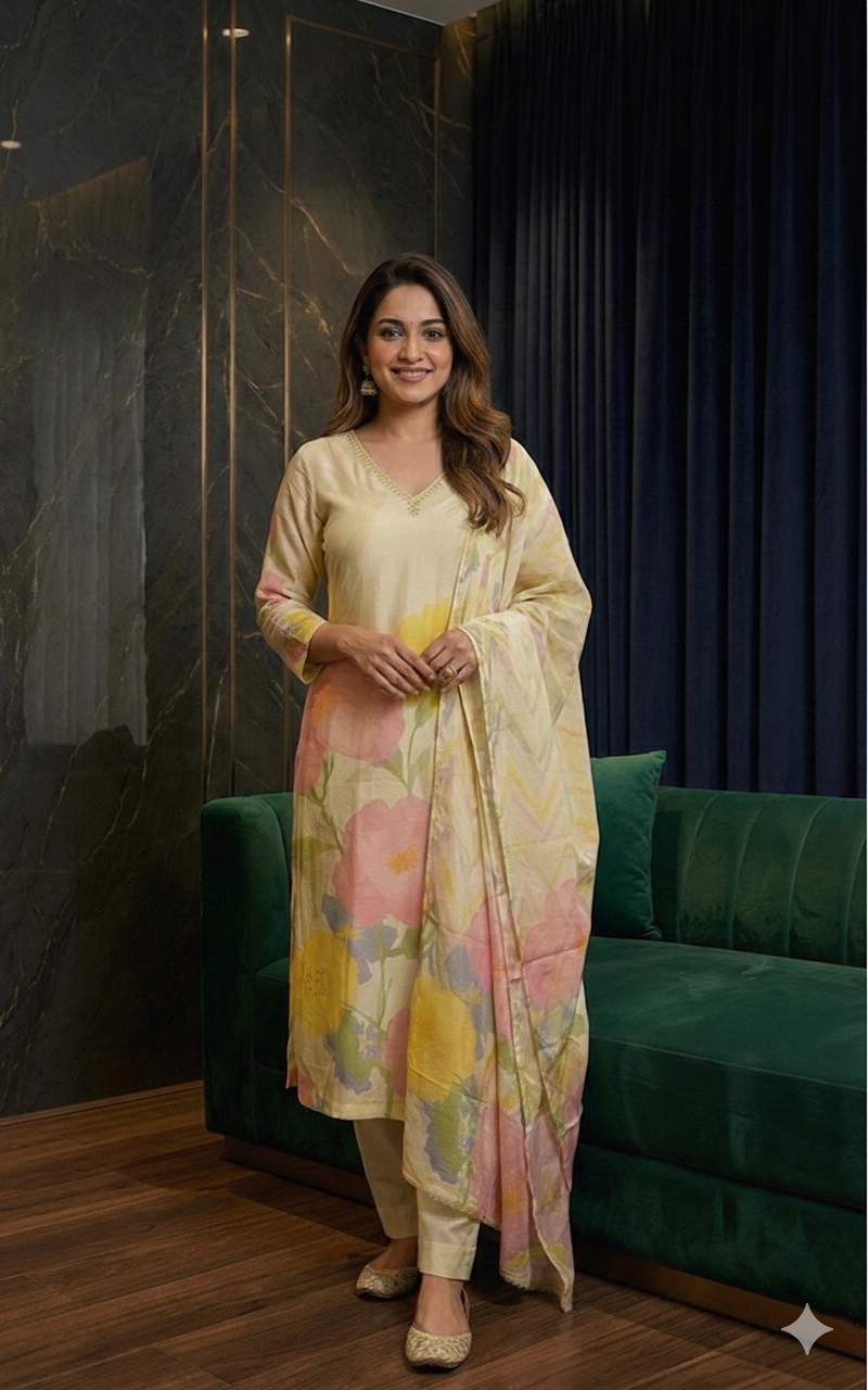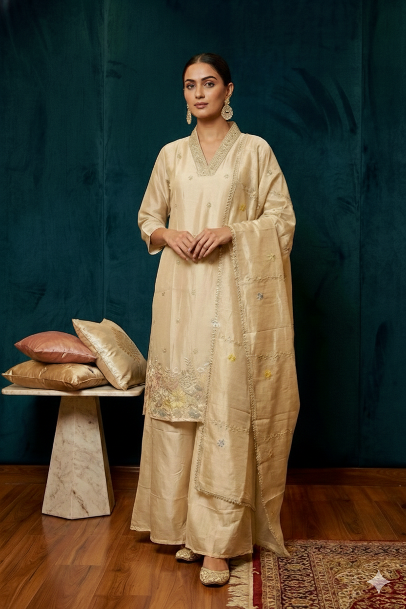 Step into timeless elegance with the Ivory Aabha Ensemble by YESZEE, a beautifully crafted outfit designed...